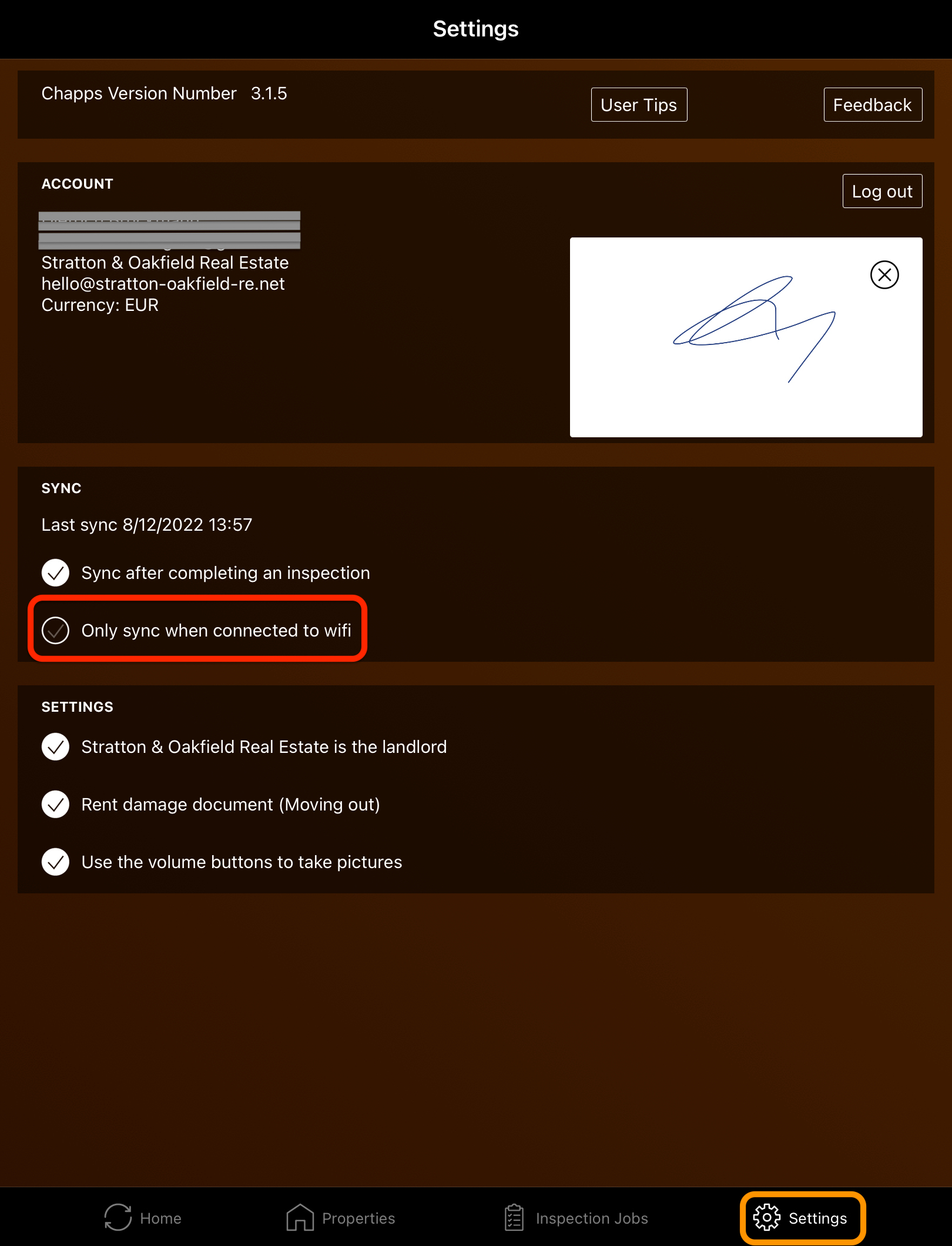 By default, the Rental Inspector app only syncs via WiFi.
