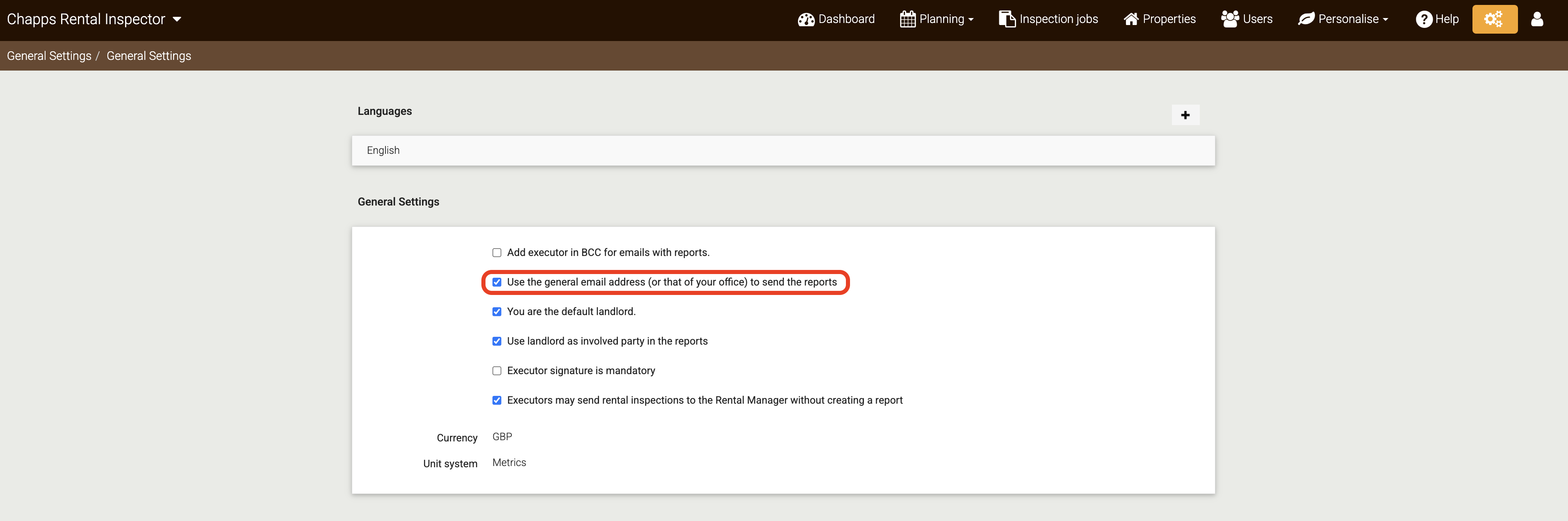 By default, the reports are sent from the email address of the inspector who carried out the check-in / check-out inspection – in other words, the user who finalises and synchronises the report. The condition is that your domain name is correctly linked (more info).