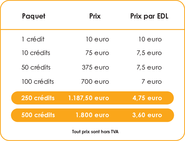 Pour créer et envoyer les rapports, vous avez besoin de crédits. Vous pouvez en acheter un seul ou un pack à un prix plus avantageux :