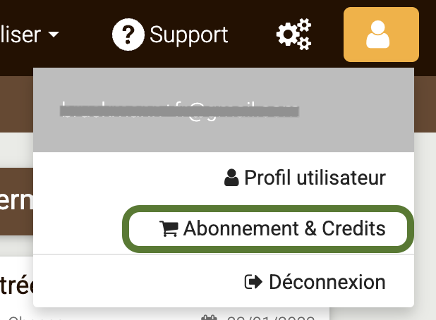 Vous pouvez activer ou prolonger votre abonnement annuel par utilisateur et acheter des crédits dans le Rental Manager via votre compte > Abonnement & Crédits dans le menu principal :