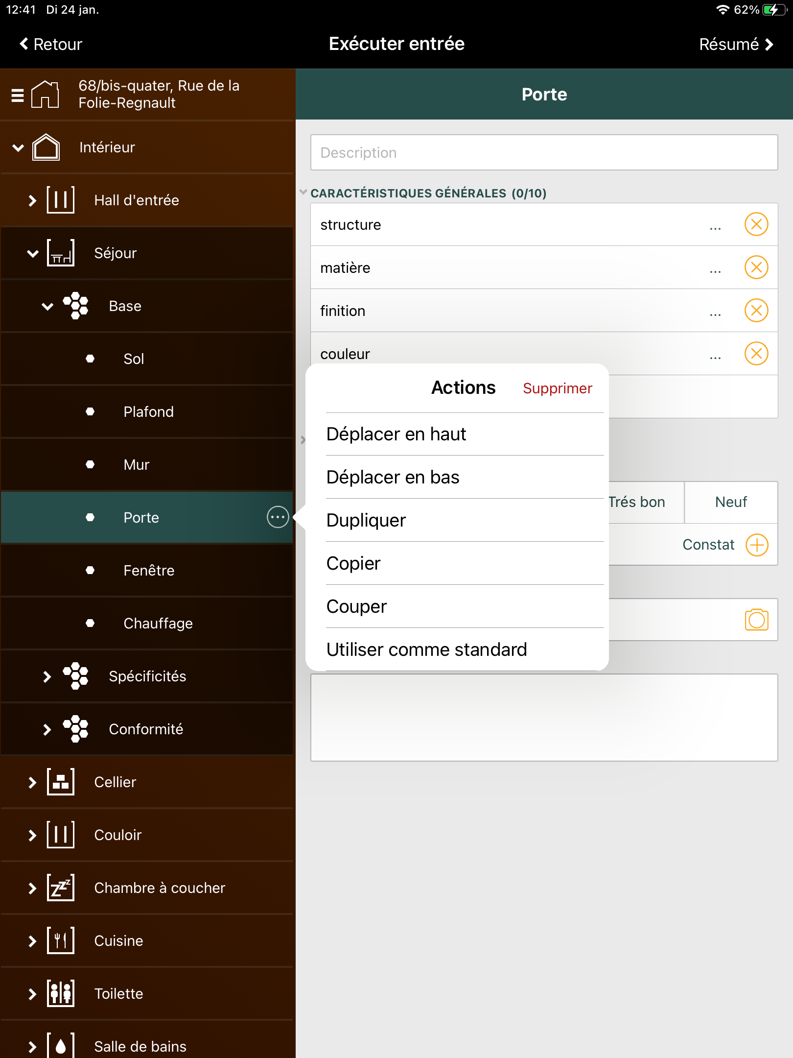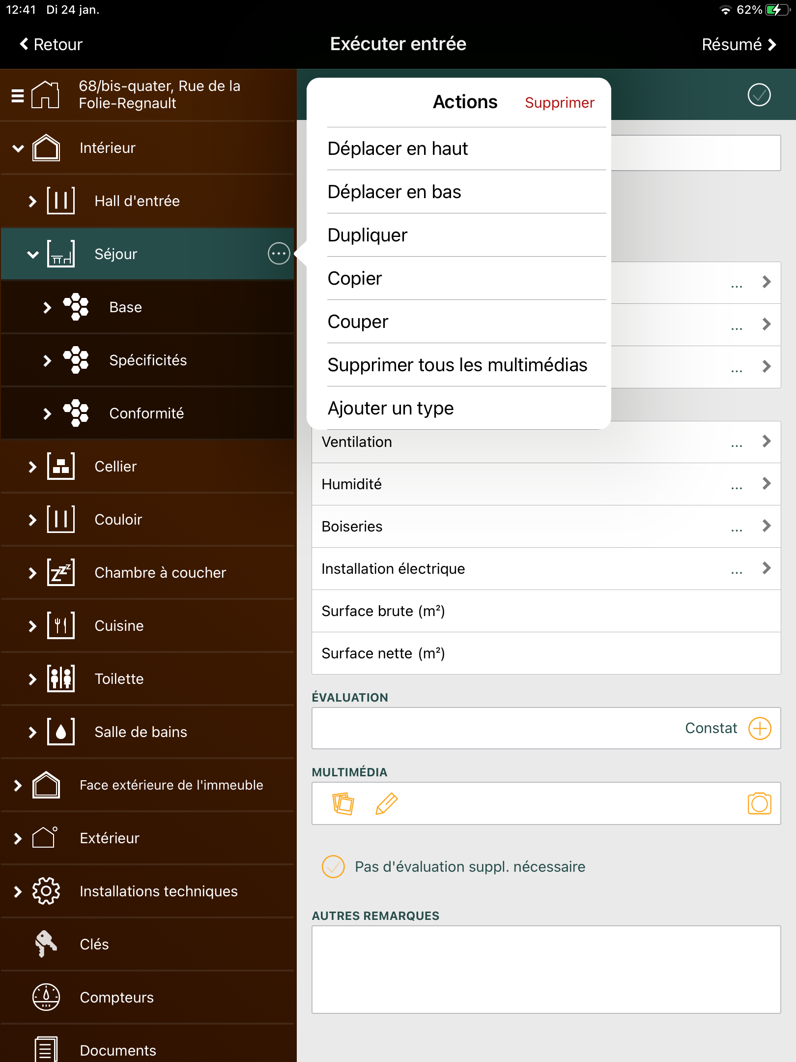 Lorsque vous dupliquez, coupez ou copiez un espace ou un élément, cela se fait uniquement pour les caractéristiques. Les photos, l'évaluation, la notation de l'opération et/ou les observations ne sont pas copiées. Ainsi, vous ne ferez pas d'erreurs dans votre état de lieu et votre rapport.