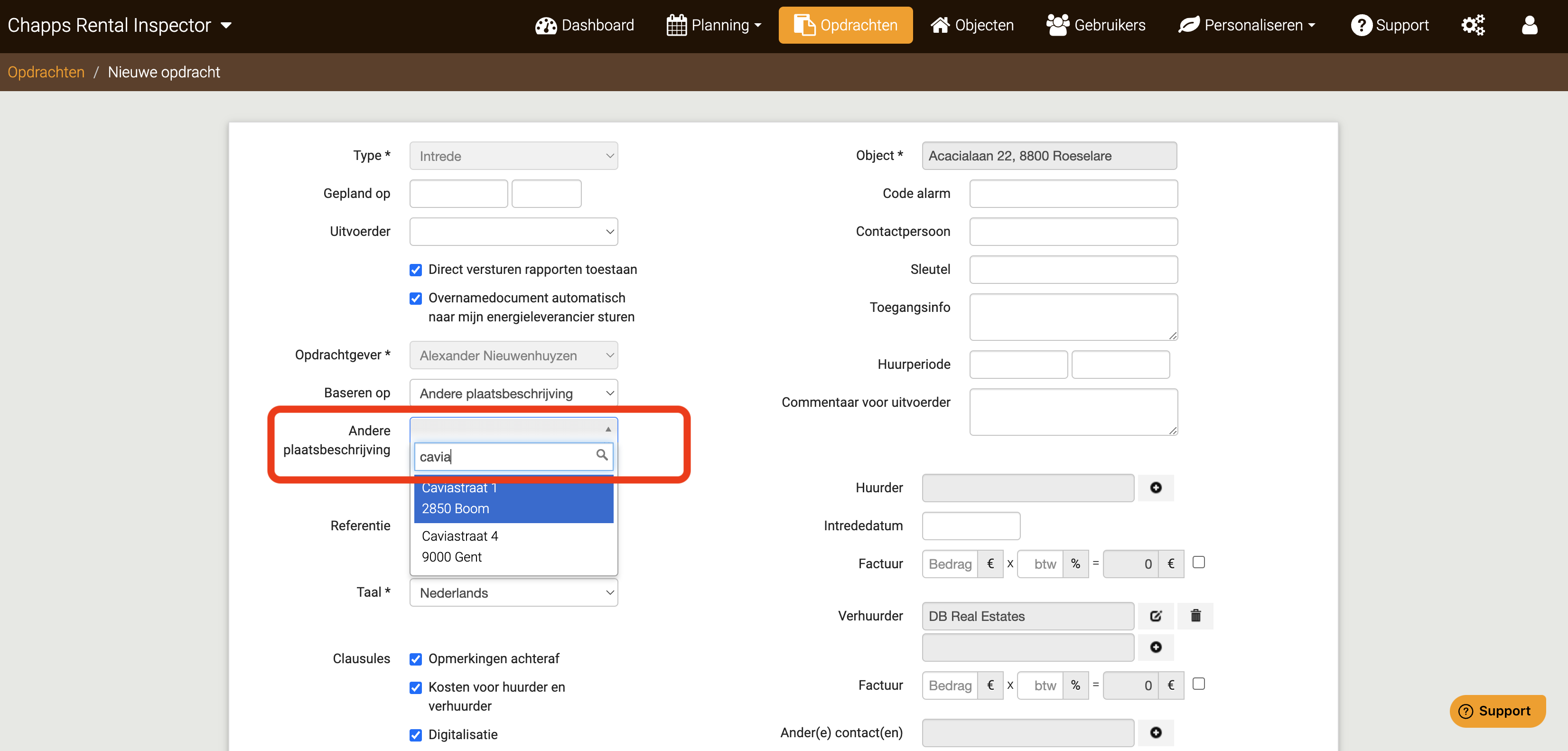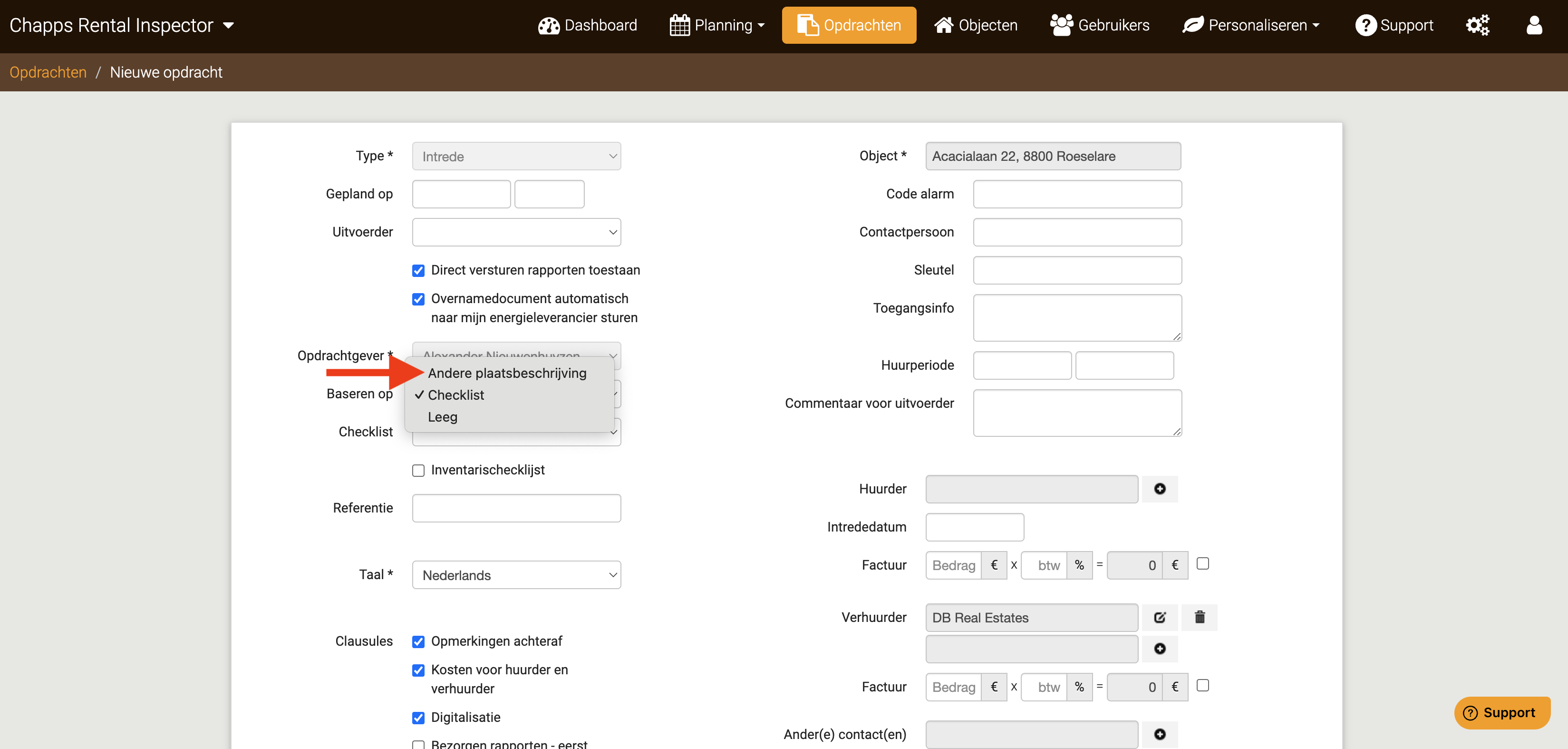 Bekijk hieronder hoe je in de Rental Manager een eerste huurinspectie van een object baseert op een reeds afgewerkte huurinspectie van een ander object, in plaats van een checklijst:
