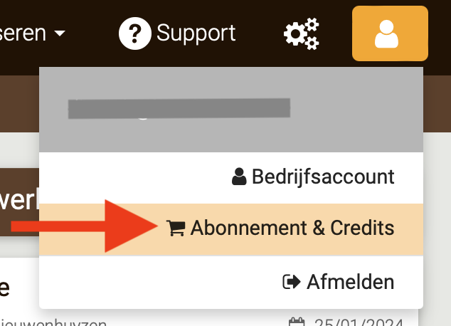 Je jaarlijks abonnement per gebruiker activeren of verlengen en credits aankopen doe je in de Rental Manager via je Account > Abonnement & credits in het hoofdmenu: