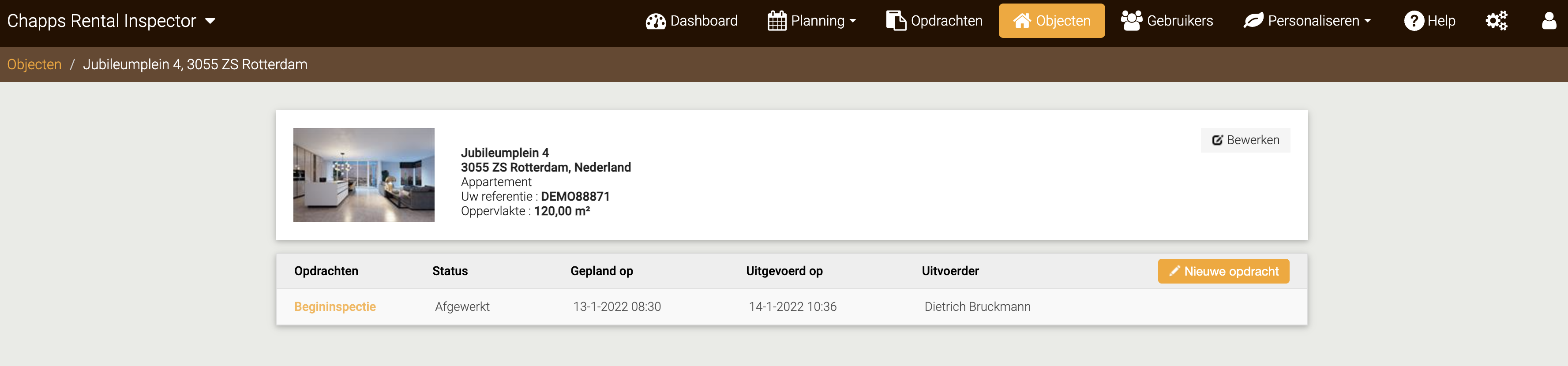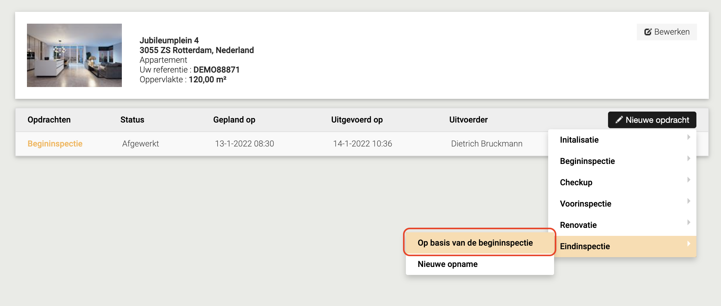 Zoals bij dit pand, waarvoor er in het verleden een begininspectie/intrede werd voltooid: